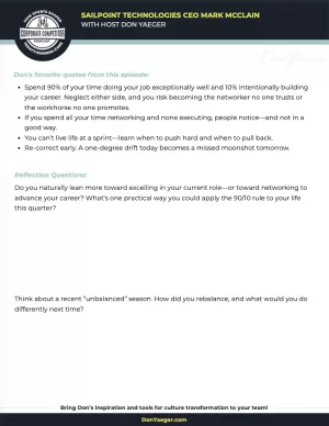 SailPoint CEO Mark McClain says: Spend 90% of your time at work on your job and 10% on your career.